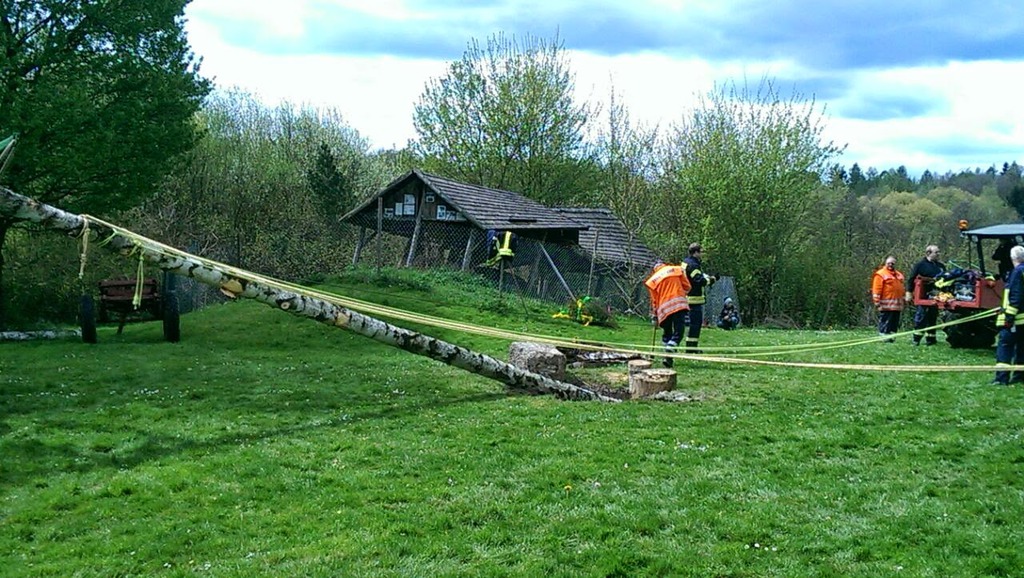 Auch in diesem Jahr haben sich unsere Kameraden wieder für die Brauchtumspflege in unserem Ort eingesetzt. Der Brauch in unserem Ort einen Maibaum zu errichten, sollte auch in diesem Jahr weiter leben. So haben sich die Kameraden unserer Ortswehr am 1. Mai schon früh aufgemacht. Bereits um 9:00 Uhr ging es in den Wald, um einen passenden Maibaum zu finden. Die Fällarbeiten, das Schmücken und Aufstellen hat unsere Feuerwehr übernommen. Wie in den vorangegenagenen Jahren wäre das Aufstellen ohne die passenden Maschinen aus dem Fuhrpark unseres Kameraden Timo Holzhausen, Thortsen Ewald, Nils Hermes, Dietmar Heuer, Timo Zoske und Sascha Hauptmann nicht möglich gewesen. Alle Kameraden haben ihre Maschinen kostenlos zur Verfügung gestellt. Für das leibliche Wohl zeichnete das Team der „Siegfrieds Klause“ verantwortlich. Nach getaner Arbeit konnte so, zusammen mit vielen Besuchern unserer Region, an der Siegfriedsklause ein gut organisiertes Fest gefeiert werden.