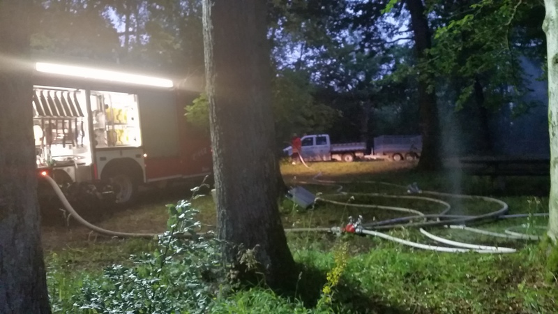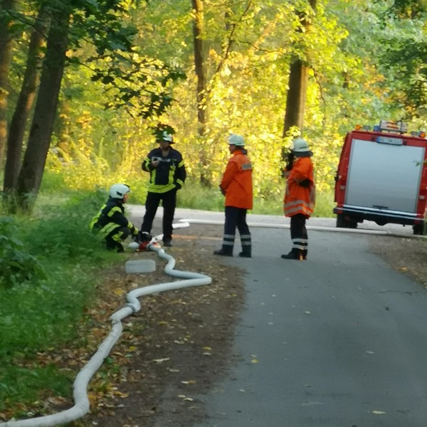 Birgit und Frank Feuerhake aus Sorsum haben ihr Jagdrevier in Coppengrave. Die Jagdpächter sind Mitglied im Alfelder und Duinger Hegering und haben unsere Feuerwehr um Hilfe gebeten, um ihnen bei der Sicherstellung der ausreichenden Bewässerung der noch bestehenden Lebensräume hier in Coppengrave zu helfen. So haben wir uns für Freitagabend zu einer Ortsbegehung verabredet. Die auszuführende Bewässerung sollte vor Ort geprüft und abgesprochen werden, um die Tiere nicht übermäßig zu stören und angemessen helfen zu können. Wenn es im Rahmen unserer feuerwehrtechnischen Möglichkeiten sichergestellt werden kann, dass die Gelbbauchunke hier erhalten bleibt, sind wir gern bereit zu helfen. Am Samstag wurde dann die Bewässerung der entsprechenden Flächen durchgeführt. Über mehrere Stunden wurde 128000 Liter Wasser gefördert.
