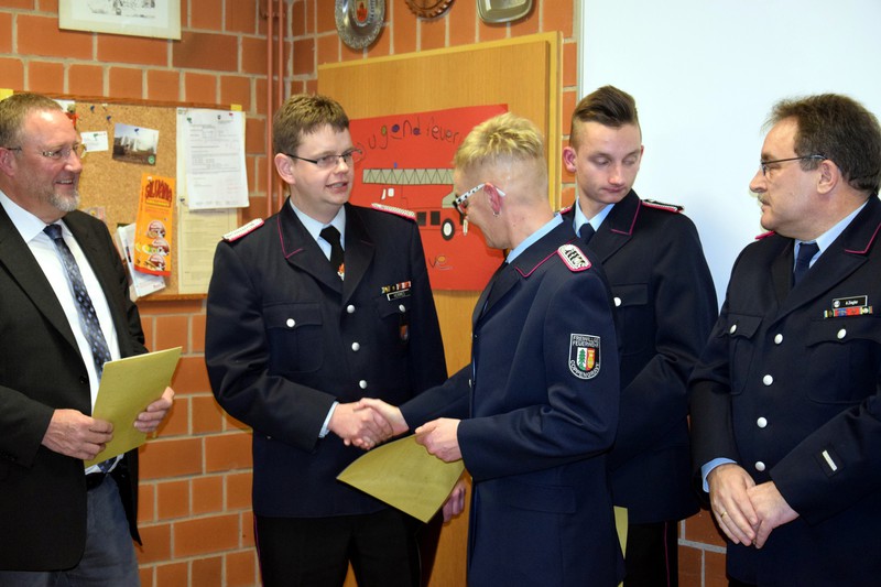 Nachdem sich ein neues Führungsduo gefunden hatte, kann nun zumindest positiv angemerkt werden, dass sich unsere Wehr durch fünf neue aktive Mitglieder erheblich verstärkt hat. Jan Winnefeld war lange bei der Bundeswehr und hatte sich nach seiner Bundeswehrzeit vorerst gegen den aktiven Dienst als Feuerwehrmann entschieden. Wir freuen uns, dass sich Jan nun doch anders entschieden hat und jetzt wieder aktiv geschrieben ist. Ricardo Ziegler kommt aus unserer Jugendfeuerwehr und wollte die Feuerwehr zunächst verlassen. Auch er hat sich jetzt anders entschieden und ist als aktiver Feuerwehrmann eingeschrieben. Neu eingetreten sind auch Jenny Krug, Janina Duveneck und Lukas Bacholke. Alle zusammen sind maßgeblich daran beteiligt, dass wir uns um die Zukunft unserer Wehr in den nächsten Jahren wenig Sorgen machen müssen. Während andere Feuerwehren in unserer Gemeinde teilweise zusammengelegt oder geschlossen werden müssen, liegen wir mit unseren Kameraden über der Mindeststärke und bleiben voll einsatzfähig. Janina, Jenny und Ricardo sind bereits für 2018 zur Truppmann-eins-Ausbildung angemeldet und die Feuerwehrkariere kann starten.