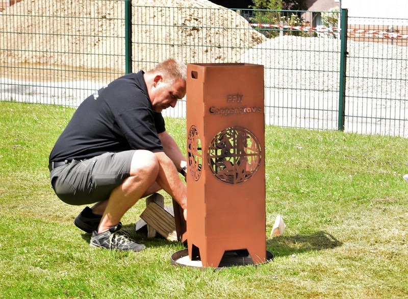 Ortsbrandmeister Nils Hermes und Stellvertreter Andreas Zieger möchten mit diesem Tag einfach mal den Einsatzkräften und deren Angehörigen gebührend DANKE sagen. Unser langjähriges Mitglied Martin Gründel, der in seiner Jugend selbst einmal in der Jugendfeuerwehr aktiv war, hat seinen Kameraden ein besonderes Geschenk spendiert. Eine Feuersäule, mit dem Wappen der Feuerwehr können die Kameraden nun ihr Eigen nennen. Unser Bäckermeister Horst Hermes versorgte die Anwesenden mit Kaffee und Kuchen. Organisator und Ausrichter war in diesem Jahr der Förderverein der Feuerwehr Coppengrave e. V.