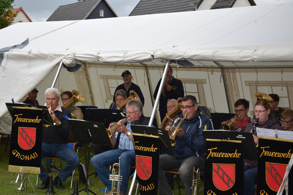 Bereits im Dezember 2017 wurden erste Kontakte zum Feuerwehr Musikzug Gronau hergestellt. Musikzugführer Andreas Reck hatte nach einem kurzen Telefonat sofort zugesagt. So konnten sich unsere Familien und Kameraden dann auch zwei Stunden über die musikalische Begleitung durch den Feuerwehrmusikzug freuen. Unter der Leitung von Dirigent Johannes Burkhard wurden viele bekannte Lieder gespielt. So erhielt unser Fest einen würdigen Rahmen.
