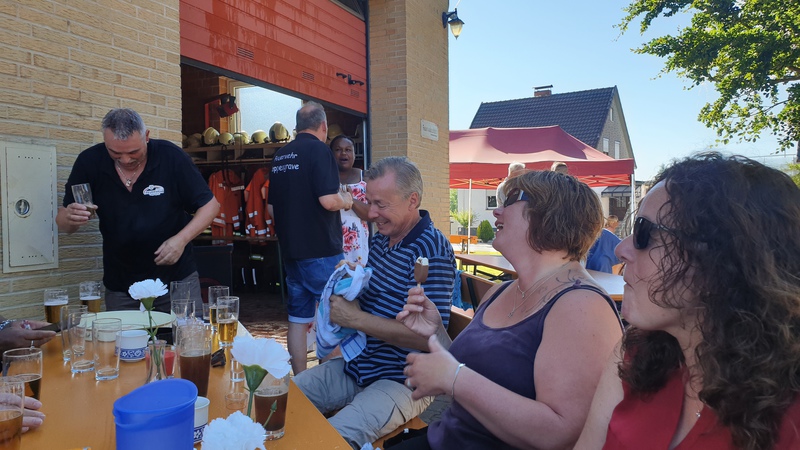 Auch unser Samtgemeindebürgermeister Wolfgang Schulz, ein regelmäßiger Gast in Coppengrave und Mitglied unserer Wehr, hatte seinen Gronauer Kollegen Rainer Mertens aus Gronau mitgebracht. Im Rahmen des gegenseitigen Kennenlernens besuchte dieser nun in lockerer Atmosphäre ein Feuerwehrhaus aus der Nachbargemeinde und suchte dort das Gespräch.