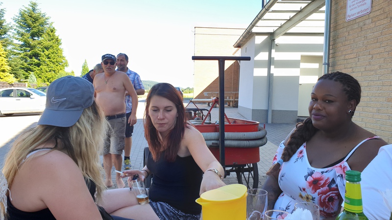 Als kleines Dankeschön für die nicht ganz stressfreien Vorarbeiten und Organisation zum Familientag hat OrtsBM Andreas Ziegler von Stellvertreterin Bärbel Pohlmann ein T-Shirt mit Aufdruck überreicht bekommen. Auf dem Rücken ist, sicherlich im Spaß gemeint, der Aufdruck „Commander Master Chef Ziege“ aufgedruckt. Hier bleibt allerdings anzumerken, das ohne das Team und die aktiven und passiven Helfer auch „Commander Master Chef Ziege“ nur die Hälfte wert gewesen wäre. Für alle Besucher gab es dann auch reichlich gesunden Fruchtsaft aus Marille, Nüssen und Obst aus der „Tupperschale“.