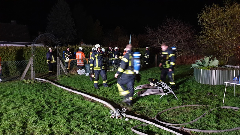 Am 07.11.2019, kommt es aus bisher ungeklärter Ursache zum Brand einer Gartenlaube im Duinger Kleingartenverein Waldfrieden. Gegen 20:52 Uhr wird der 6. Zug der Samtgemeinde Leinebergland, also Einsatzkräfte aus Capellenhagen, Coppengrave, Duingen, Fölziehausen, Marienhagen und Weenzen in den Lönsweg nach Duingen alarmiert. Da die Duinger und Coppengraver gerade ihren gemeinsamen Übungsabend gestalteten, waren alle Löschfahrzeuge bereits besetzt und konnten unverzüglich zum Einsatzort starten. Trotzdem konnte die Gartenlaube nicht mehr gerettet werden. Obwohl die Einsatzkräfte sehr schnell vor Ort waren, befand sich die Laube bereits im Vollbrand. Zeugen hatten einen Knall gehört und wollten Nachschau halten. Bei ihrem Eintreffen stand die Laube bereits komplett in hellem Feuerschein. Die Einsatzkräfte konnten den Besitzer vor der Laube sitzend mit starken Brandverletzungen antreffen und leiteten die Erstversorgung ein. Zur Brandursache konnte er keine Angaben machen. Der 63- jährige Gronauer wurde so stark verletzt, dass er mit dem RTW der Med. Hochschule Hannover zugeführt werden musste. Einsatzleiter Nils Marahrens und Stellv. Gemeindebrandmeister Stephan Lehnst konnten sich bei insgesamt 48 Einsatzkräften bedanken. Es entstand Eine Sachschaden in bisher noch unbekannter Höhe. Die Polizei aus Alfeld und Hildesheim haben die Ermittlungen aufgenommen.