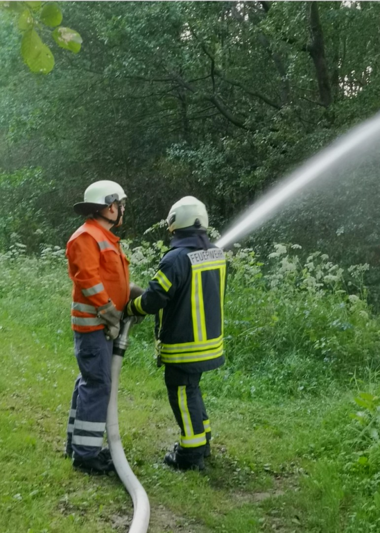 Zusammen mit den Duinger Kameraden wurde für den 08.08.2019 eine Übung ausgearbeitet, bei der es um einen Wald- und Fläschenbrand ging. Die Wasserförderung erfolgte aus dem Teich an der Köhlerhütte. Die Wasserförderstrecke verlief über mehrere hundert Meter quer durch den Wald in Richtung Schützenhaus. Anschließend wurde die Übung bei Bier und Bratwurst besprochen.